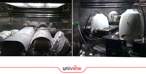 圖:宇視球機接受太陽輻射模擬箱嚴苛測試(高溫50℃)