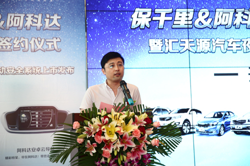 隨后,匯天源汽車集團董事長助理蒙文斌、阿科達汽車電子有限公司總經理溫寒分別發表致辭。他們一致表示,隨著汽車后市場之爭日趨火熱,只有洞悉消費需求,運用創新思維,堅持服務至上,企業才能獲得健康、持久發展。他們相信,依托保千里在汽車主動安全領域的卓越實力與匯天源集團堅實的渠道、客戶基礎,通過高效整合雙方在技術、產品、銷售、服務等多方位資源,將聯手打造安全行車新風尚。